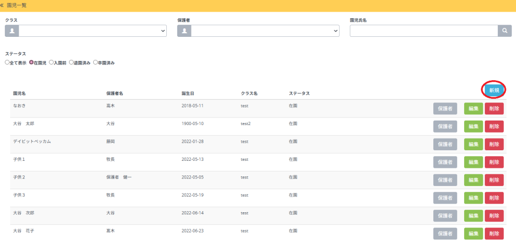 「閉じる」ボタンを押すと保存せずに園児一覧画面に戻ります